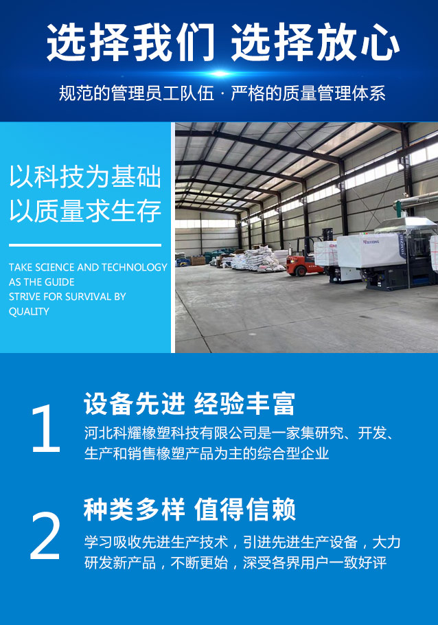 河北科耀橡塑科技有限公司是生产销售于一体的现代企业,公司位于华北平原境内,紧靠全国大动脉京九,石德铁路,交通十分便利。