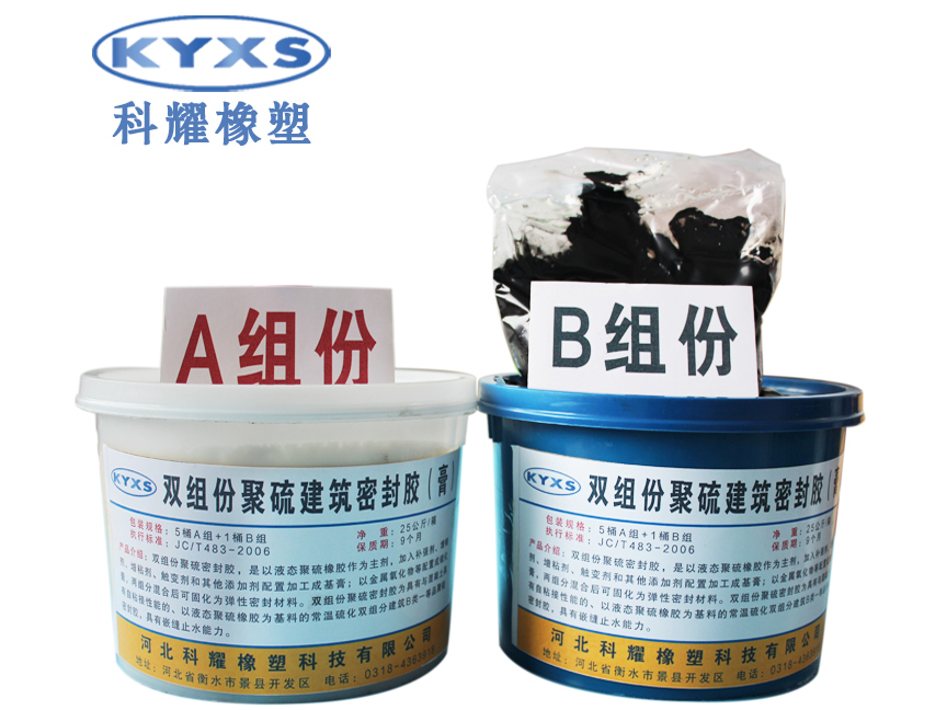 双组份聚硫密封胶外观为细腻 、均匀膏状物或粘稠体,所以通常也被称为双组份聚硫密封膏,双组份聚硫密 封胶和双组份聚硫密封膏是同一种产品。双组份聚硫密封胶以液态聚硫橡胶为 主要基料,添加多种化学助剂经特殊高分子材料合成工艺制作而成的常温下能 够自硫化交联的双组分密封胶, 对金属及混凝土等材质具有良好的粘接性,可 在连续伸缩、振动及温度变化下保持良好的气密性和防水性,可以连续伸缩、 振动及温度变化下保持良好的气密性和防水性,且耐油、耐溶剂、耐久性好 。